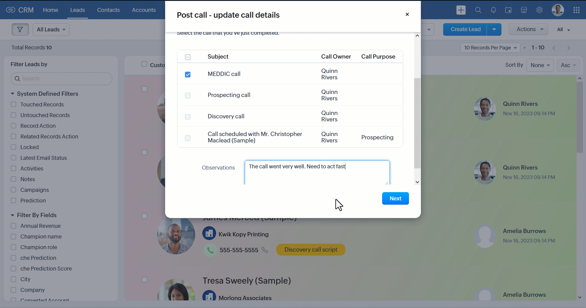 Podczas gdy użytkownik kończy proces, Zoho CRM wykorzystuje zebrane dane do aktualizacji pól w wielu modułach, tworzy nowe rekordy, wyzwala webhooki i wykonuje funkcje. Użytkownicy mają zatem przyjemne doświadczenie pracy z narzędziem zbudowanym wokół ich rzeczywistego przepływu pracy, podczas gdy administratorzy i menedżerowie sprzedaży mogą zapewnioną zgodność procesu i dokładne wprowadzanie danych do CRM.