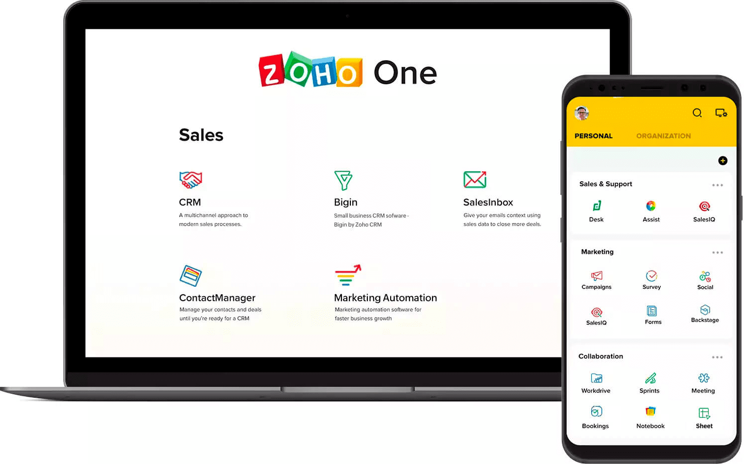 Ponad 50 aplikacji pokrywających pełne potrzeby w zakresie sprzedaży, marketingu, obsługi klienta, komunikacji online, marketingu, współpracy, administracji, finansów, operacji biznesowych, zasobów ludzkich (HR), automatyzacji i procesów biznesowych.